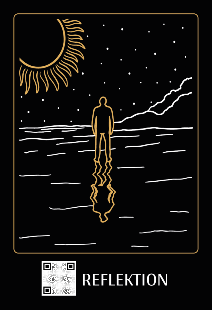 Die Reflektion ermöglicht dir eine bewusste Auseinandersetzung, Überprüfung und Spiegelung von Geschehenem und macht dir dein inneres Erleben und die größeren Zusammenhänge bewusst.